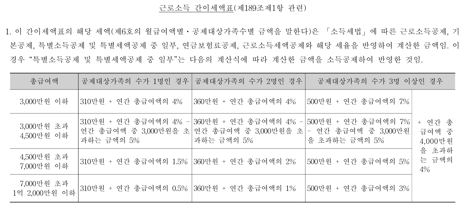 소득세법 근로소득 간이세액표에 근거하여 공제됩니다.